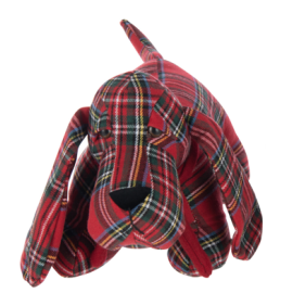 Pilou, un chien cale-porte en tissu à motif écossais, à la fois décoratif et pratique pour maintenir les portes avec charme.