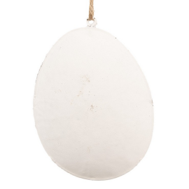 Suspension en forme d’œuf de Pâques, réalisée en métal. Idéale pour apporter une touche décorative et printanière.